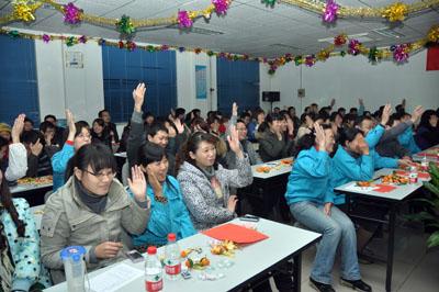 | ??????? 1月16日晚19:30,利達光電二〇一二年迎新春聯(lián)歡會在104四樓培訓室激情上演,公司領導和員工110余人歡聚一堂,共迎新春佳節(jié),整個會場喜氣洋洋,春意濃濃,溫馨祥和。各事業(yè)部、車間、職能部室的職工們自編自演的三句半、單口相聲、歌伴舞、小品、吉他獨奏、合唱等精彩節(jié)目,用飽滿的熱情來表達對龍年新春的祝福,表達了對新年的期盼,對未來美好生活的向往以及與公司同呼吸、共命運、再鑄新輝煌的信心與決心。 ?????? 利達公司總經理李智超在新春聯(lián)歡會上發(fā)表致辭,對全體職工一年來所付出的辛勤勞動表示感謝,對職工家屬所給予的大力支持表示謝意。作為“十二五”的開局之年,為進一步認清公司發(fā)展形勢,展望未來,增強溝通,齊心協(xié)力推動公司“七個調整”,努力實現(xiàn)產業(yè)優(yōu)化升級與質量效益全面提高,以奮發(fā)有為的精神狀態(tài),加快轉變公司經濟發(fā)展方式,做實做好五大項目,突出主業(yè)著力提高,構建利達光電系統(tǒng)競爭 力。新的一年,公司要著力建設光學薄膜與數(shù)字投影顯示全球一流企業(yè);新的一年,我們將迎來利達發(fā)展歷史上最難得的發(fā)展機遇。公司與富士康的合作,將推動公司向世界品牌及大規(guī)?;斑M;通過國際合作,以重大項目為抓手,把公司的發(fā)展提高到一個新的水平、新的層次、新的境界,我們將以新的作為和新的成就迎接利達光電的跨越發(fā)展。最后,李總希望全體職工在新的一年繼續(xù)為推進“十二五”的戰(zhàn)略目標,以及各項工作上臺階而努力奮斗, 會上,李智超總經理為每一名職工送去祝福,祝愿全體職工新年愉快、身體健康、闔家幸福、吉祥如意。 ??????? 聯(lián)歡會在詩朗誦《土地----致利達光電》優(yōu)美的旋律中拉開了帷幕。聯(lián)歡會在歌伴舞《中國話》的熱烈、奔放的氣氛中活躍,一下子把觀眾的開心、歡樂的情緒調動起來。三句半《喜迎新春》、《利達發(fā)展新事多》鼓、鑼、镲交替清脆鳴響,四人輪番上陣道輝煌,尤其是節(jié)目臨近結束時四人合力送出的舞蹈,帶出了祥和、喜慶、熱烈的新春氣息;小品《新白娘子》用現(xiàn)代版的語言和行為方式,表演者古今臺詞合用頗具幽默風趣,臺上笑料迭出,臺下笑聲、掌聲不斷,晚會現(xiàn)場成了歡樂的海洋。行政部選送的小品《使命》、《職責》,構思獨特,表演形式新穎,武打動作逼真,表達了公司員工熱愛企業(yè),對待自己的工作愛崗敬業(yè)、恪盡職守;單口相聲《我的優(yōu)點》語言幽默風趣、捧哏逗哏配合默契,表演惟妙惟肖,將公司2012年的新氣象一一呈現(xiàn);吉他彈唱《老男孩》、粵語歌曲獨唱《真的愛你》等豐富多彩的節(jié)目,展現(xiàn)了利達人多才多藝、能歌善舞。五次抽獎穿插整臺聯(lián)歡會始終,不斷將聯(lián)歡會推向高潮,穿插的抽獎環(huán)節(jié)使現(xiàn)場員工驚喜萬分。聯(lián)歡晚會伴隨著《明天會更好》的優(yōu)美旋律圓滿結束。 ??????? 聯(lián)歡會雖然結束了,但全體演職員工帶給大家的歡樂,帶給大家的對利達的熱情,不會因為冬日的嚴寒而消退,也不會因為時間的流逝而減淡,每一位利達人將銘記這種歡樂,然后將歡樂化為激情,投入到建設具有國際競爭力的利達企業(yè)的大潮中去。此次聯(lián)歡活躍了員工文化生活,加強了員工之間的溝通,增強了企業(yè)的凝聚力,營造了良好的和諧氛圍。展望新的一年,廣大員工對企業(yè)的穩(wěn)定、持續(xù)發(fā)展充滿了信心。 廣大員工們決心在公司正確領導下,繼續(xù)努力拼搏,取得更大的工作業(yè)績。(文/周玉霞) ??????? 以下是會議現(xiàn)場剪影: |