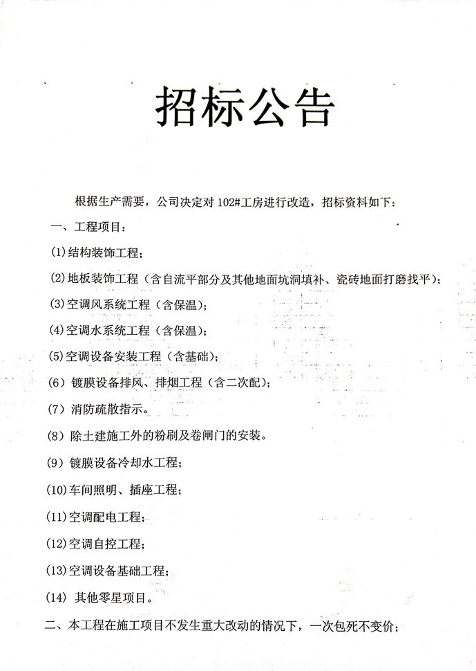 102#廠房改造招標(biāo)公告